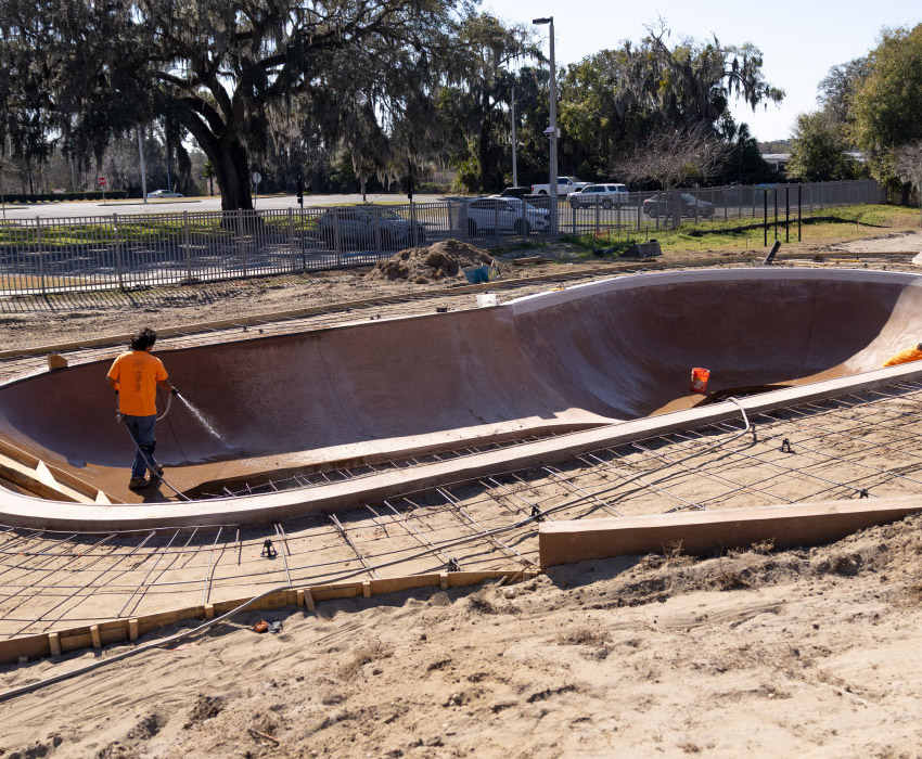 The Ocala Skate Park expansion project broke ground Aug. 28, 2025. The project has added more than 6,000 square feet of new features, including a competition-sized bowl, beginner and intermediate areas, a snake run and upgraded spectator amenities.